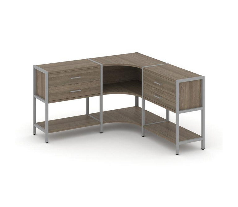 Shelf System Трехсекционный угловой стеллаж двухярусный с ящиками SN.STMU-231 Вяз Благородный/Металл
