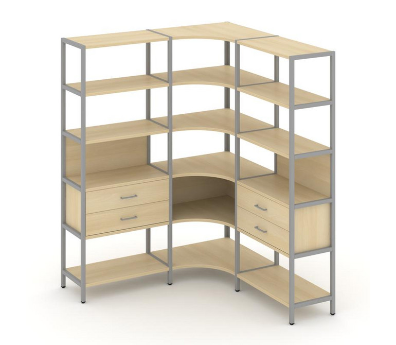 Shelf System Трехсекционный угловой стеллаж пятиярусный с ящиками SN.STMU-531 Акация Лорка/Металл Се