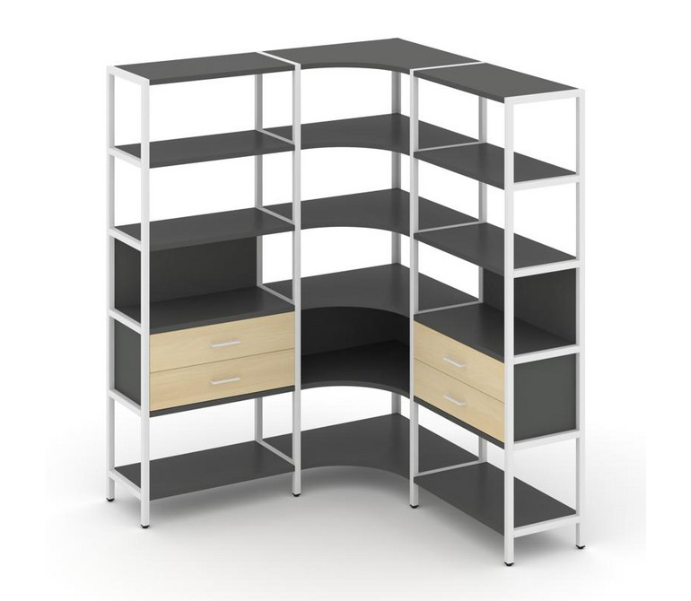 Shelf System Трехсекционный угловой стеллаж пятиярусный с ящиками SN.STMU-531 Антрацит/Акация Лорка/