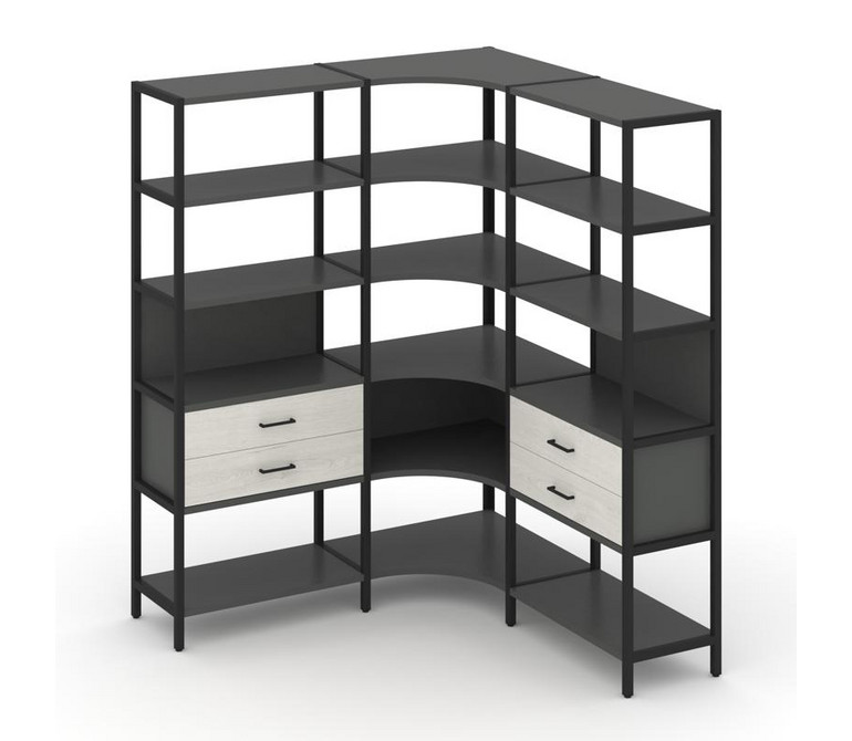 Shelf System Трехсекционный угловой стеллаж пятиярусный с ящиками SN.STMU-531 Антрацит/Дуб Наварра/М
