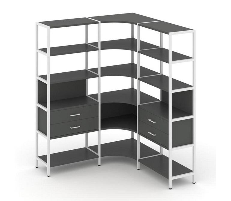 Shelf System Трехсекционный угловой стеллаж пятиярусный с ящиками SN.STMU-531 Антрацит/Металл Белый