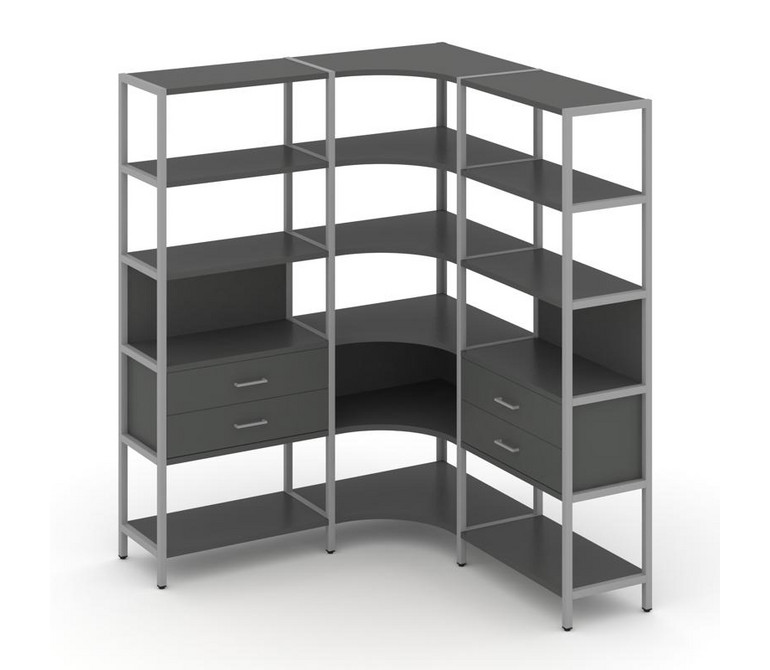 Shelf System Трехсекционный угловой стеллаж пятиярусный с ящиками SN.STMU-531 Антрацит/Металл Серый