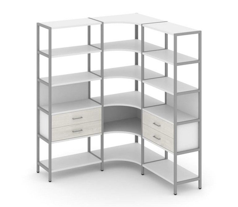 Shelf System Трехсекционный угловой стеллаж пятиярусный с ящиками SN.STMU-531 Белый/Дуб Наварра/Мета
