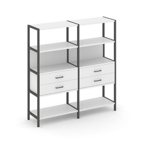 Shelf System Трехсекционный угловой стеллаж пятиярусный с ящиками SN.STMU-531 Белый/Дуб Наварра/Мета