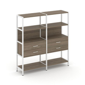 Shelf System Трехсекционный угловой стеллаж пятиярусный с ящиками SN.STMU-531 Белый/Дуб Табак/Металл