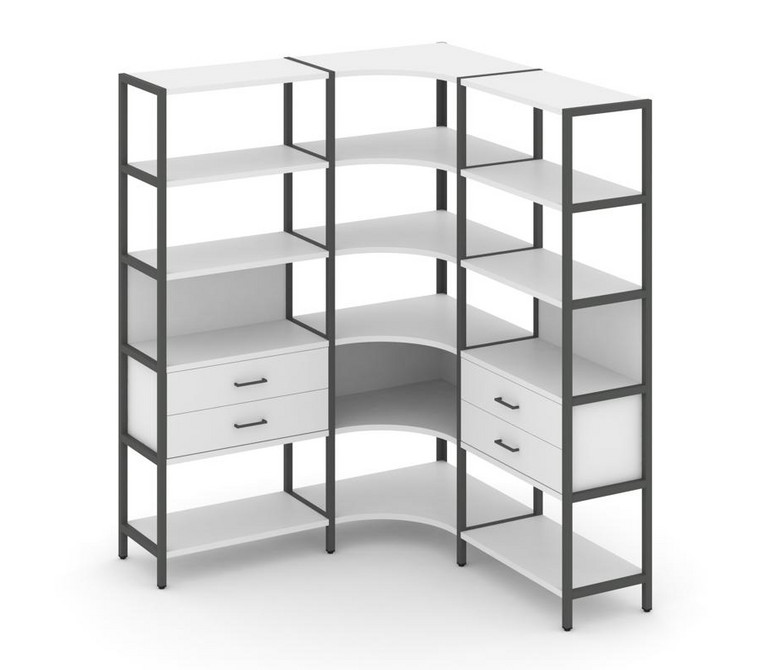 Shelf System Трехсекционный угловой стеллаж пятиярусный с ящиками SN.STMU-531 Белый/Металл Антрацит