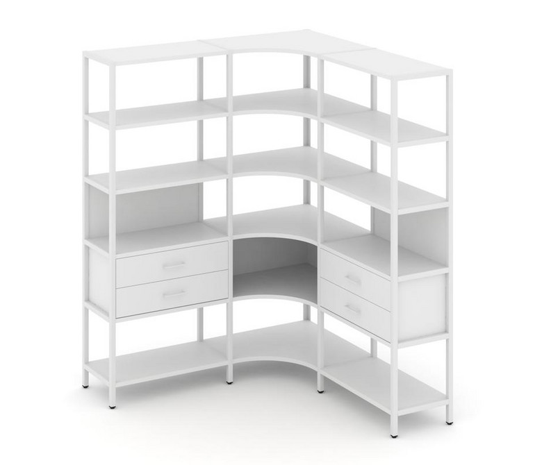 Shelf System Трехсекционный угловой стеллаж пятиярусный с ящиками SN.STMU-531 Белый/Металл Белый 159