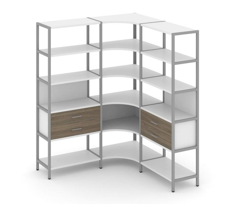 Shelf System Трехсекционный угловой стеллаж пятиярусный с ящиками SN.STMU-531 Белый/Вяз Благородный/