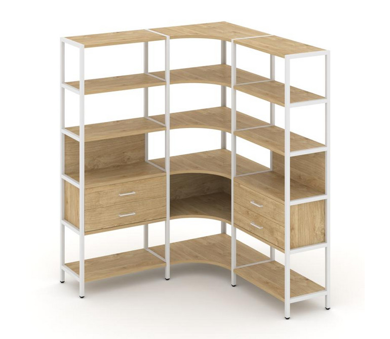 Shelf System Трехсекционный угловой стеллаж пятиярусный с ящиками SN.STMU-531 Тиквуд Светлый/Металл