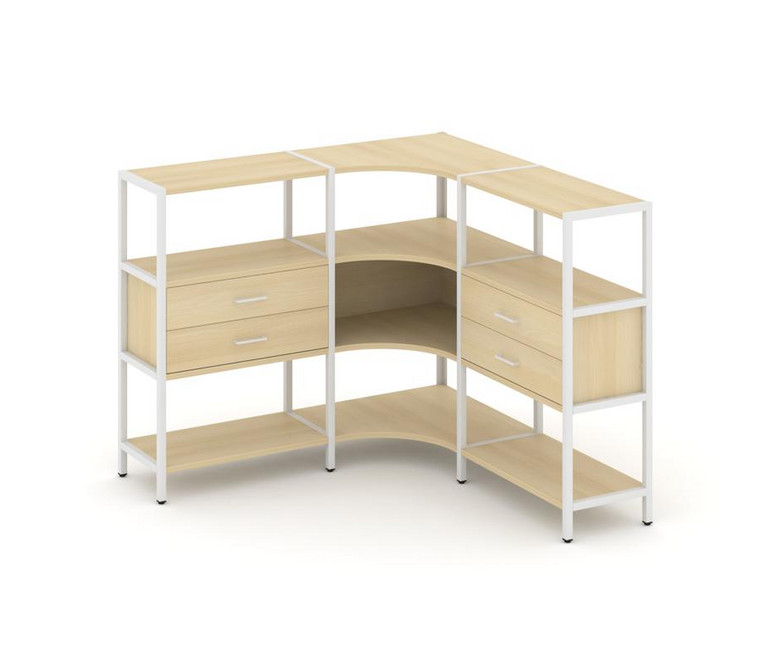 Shelf System Трехсекционный угловой стеллаж трехярусный с ящиками SN.STMU-331 Акация Лорка/Металл Бе