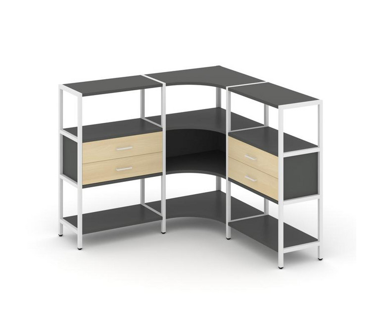 Shelf System Трехсекционный угловой стеллаж трехярусный с ящиками SN.STMU-331 Антрацит/Акация Лорка/