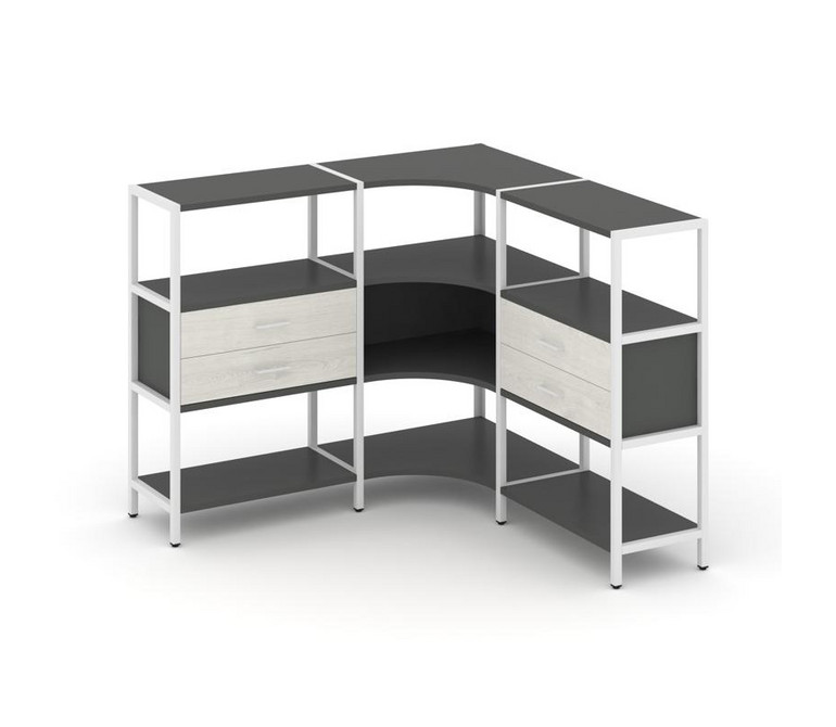 Shelf System Трехсекционный угловой стеллаж трехярусный с ящиками SN.STMU-331 Антрацит/Дуб Наварра/М