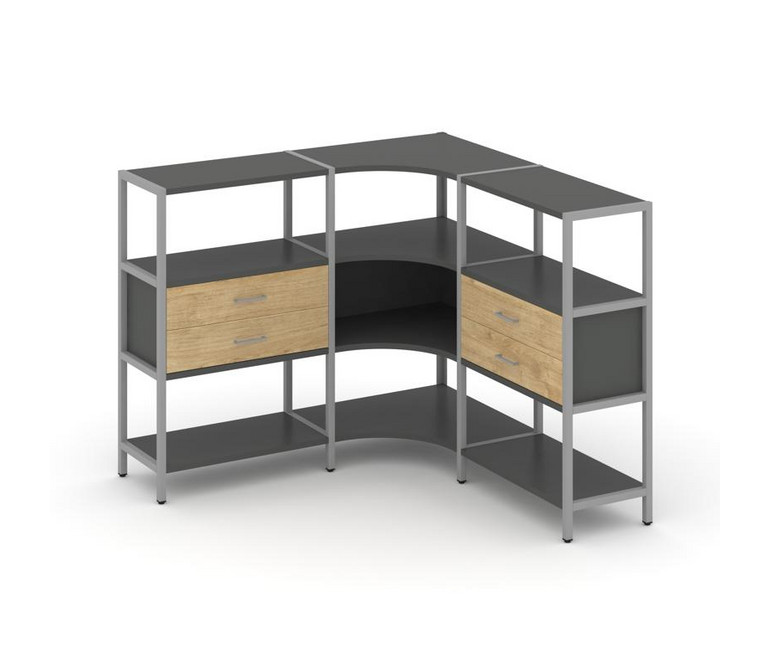 Shelf System Трехсекционный угловой стеллаж трехярусный с ящиками SN.STMU-331 Антрацит/Тиквуд Светлы