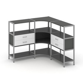 Shelf System Трехсекционный угловой стеллаж трехярусный с ящиками SN.STMU-331 Белый/Дуб Табак/Металл