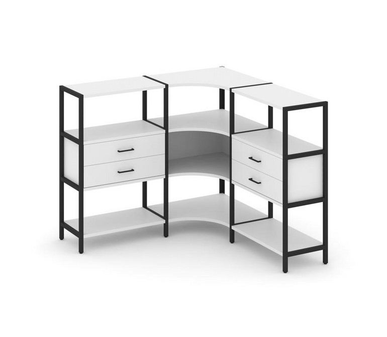 Shelf System Трехсекционный угловой стеллаж трехярусный с ящиками SN.STMU-331 Белый/Металл Черный 15