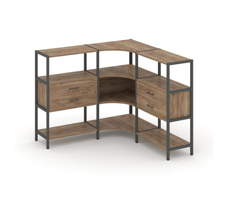 Shelf System Трехсекционный угловой стеллаж трехярусный с ящиками SN.STMU-331 Дуб Табак/Металл Антра
