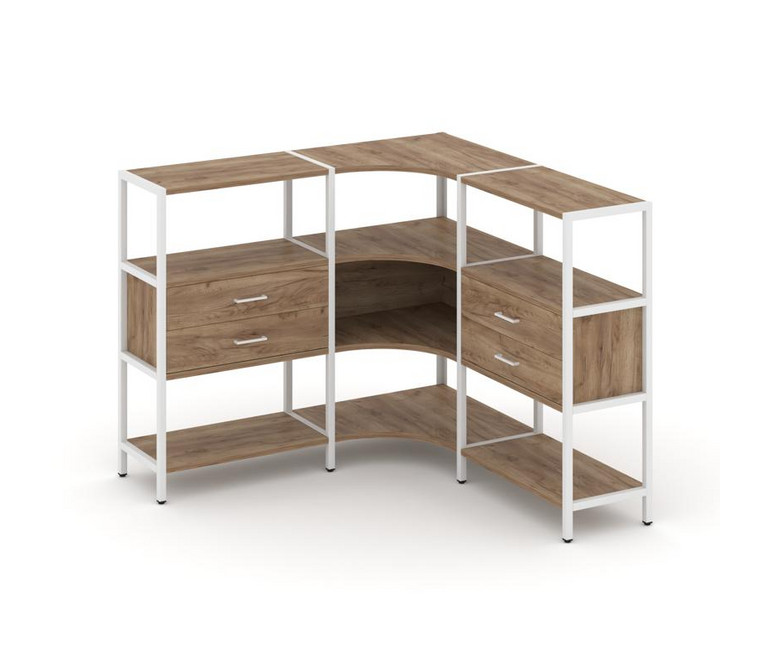 Shelf System Трехсекционный угловой стеллаж трехярусный с ящиками SN.STMU-331 Дуб Табак/Металл Белый