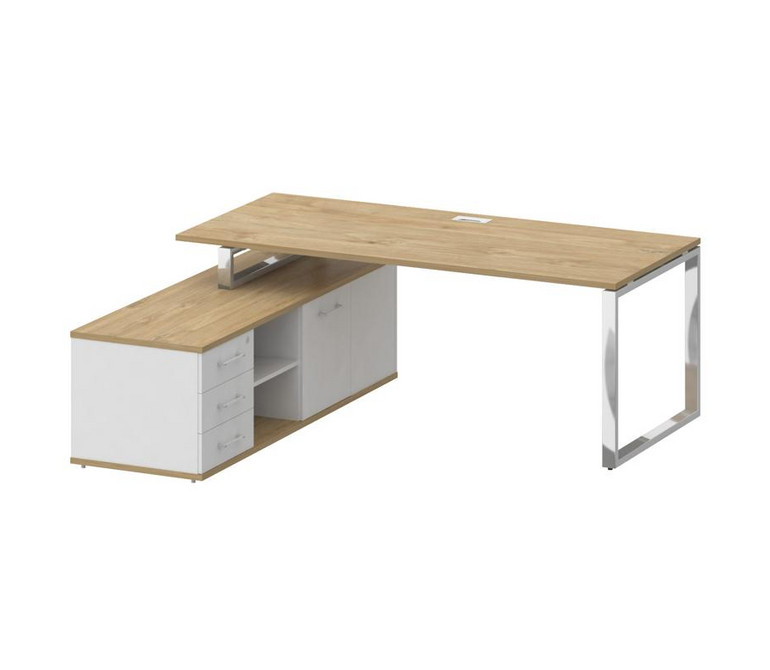 Shift Стол руководителя с опорной греденцией, левый SK.SRG-200 (L) Тиквуд Светлый/Белый Бриллиант 20