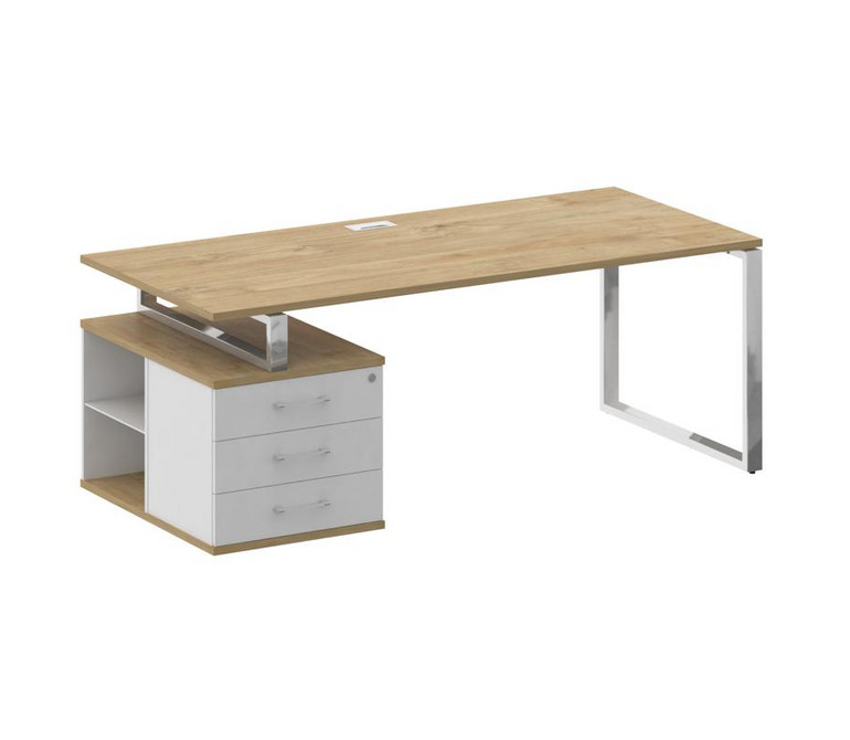 Shift Стол руководителя с опорной тумбой, левый SK.SRT-200 (L) Тиквуд Светлый/Белый Бриллиант 2000*9