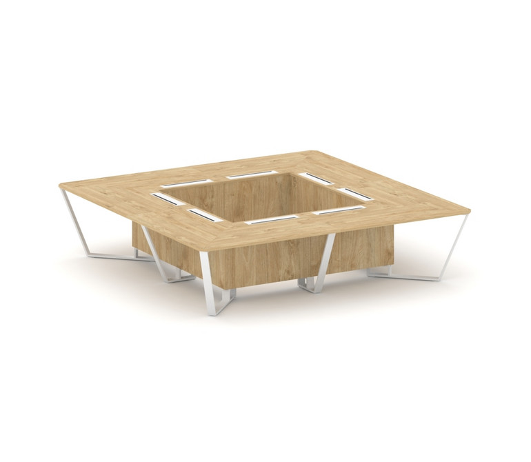 Steel Meet Стол переговорный квадратный KDK-PR.B.SP-16K Тиквуд Светлый/Металл Белый 3200*3200*750