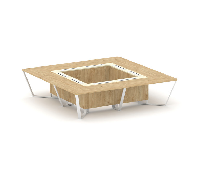 Steel Meet Стол переговорный квадратный KM-PR.B.SP-16K Тиквуд Светлый/Ваниль Глянец/Металл Белый 320
