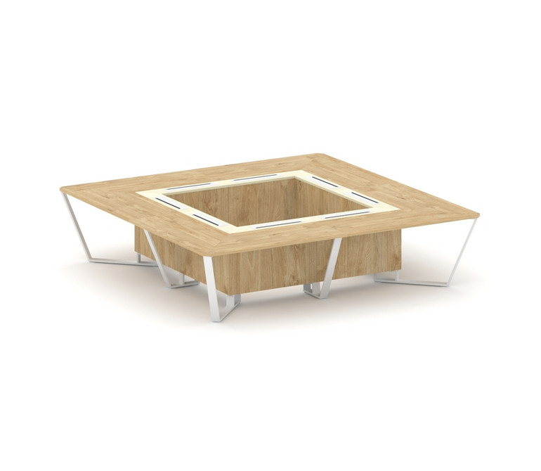 Steel Meet Стол переговорный квадратный KMK-PR.B.SP-16K Тиквуд Светлый/Ваниль Глянец/Металл Белый 32
