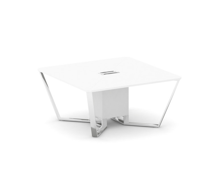 Steel Meet Стол переговорный квадратный MDK-PR.B.SP-08 Белый Бриллиант/Нержавеющая Сталь/Хром 1600*1
