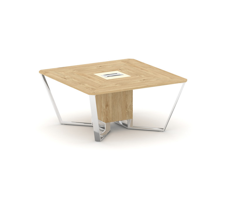 Steel Meet Стол переговорный квадратный MM-PR.B.SP-08 Тиквуд Светлый/Ваниль Глянец/Нержавеющая Сталь