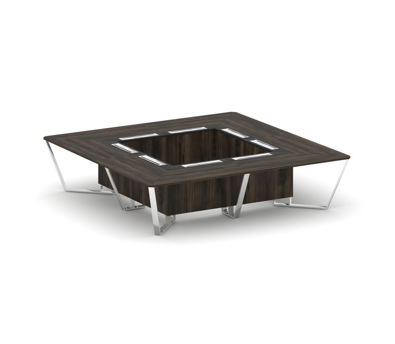 Steel Meet Стол переговорный квадратный MM-PR.B.SP-16K Дуб Мали/Графит Глянец/Нержавеющая Сталь/Хром