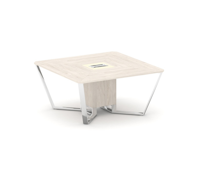 Steel Meet Стол переговорный квадратный MMK-PR.B.SP-08 Денвер Светлый/Ваниль Глянец/Нержавеющая Стал