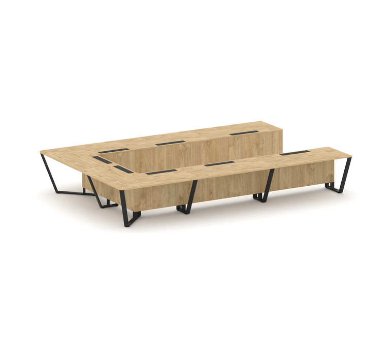 Steel Meet Стол переговорный П-образный KD-PR.B.SP-15P Тиквуд Светлый/Металл Черный 4800*3200*750