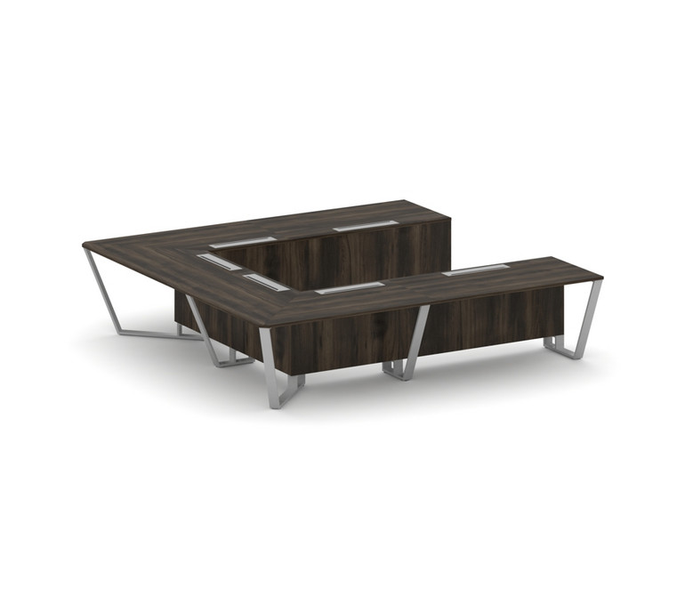 Steel Meet Стол переговорный П-образный KDK-PR.B.SP-11P Дуб Мали/Металл Серый 3200*3200*750