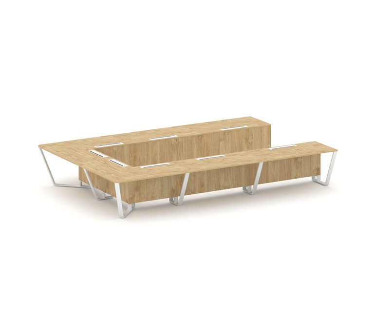 Steel Meet Стол переговорный П-образный KDK-PR.B.SP-15P Тиквуд Светлый/Металл Белый 4800*3200*750