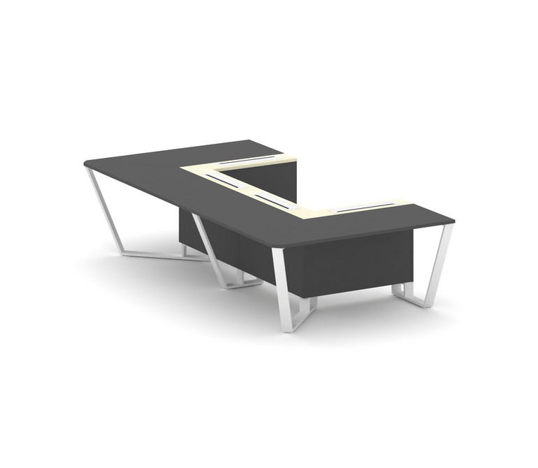 Steel Meet Стол переговорный П-образный KM-PR.B.SP-07P Антрацит/Ваниль Глянец/Металл Белый 1600*3200