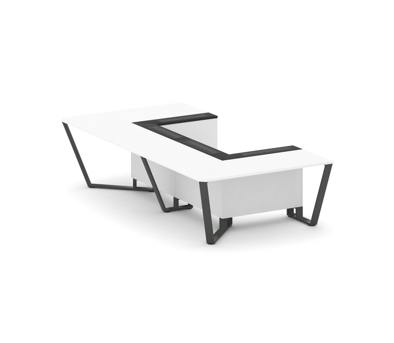 Steel Meet Стол переговорный П-образный KM-PR.B.SP-07P Белый Бриллиант/Графит Глянец/Металл Антрацит