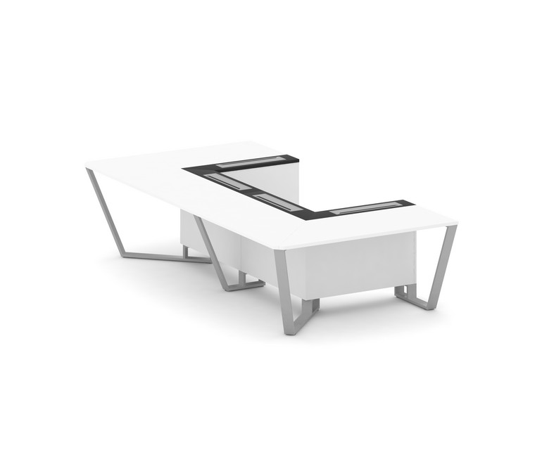 Steel Meet Стол переговорный П-образный KM-PR.B.SP-07P Белый Бриллиант/Графит Глянец/Металл Серый 16