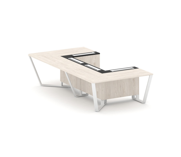 Steel Meet Стол переговорный П-образный KM-PR.B.SP-07P Денвер Светлый/Графит Глянец/Металл Белый 160