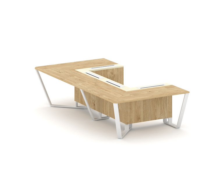 Steel Meet Стол переговорный П-образный KM-PR.B.SP-07P Тиквуд Светлый/Ваниль Глянец/Металл Белый 160