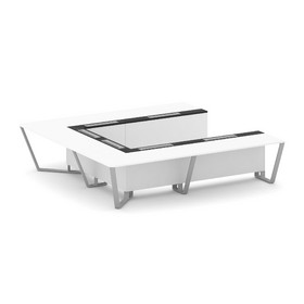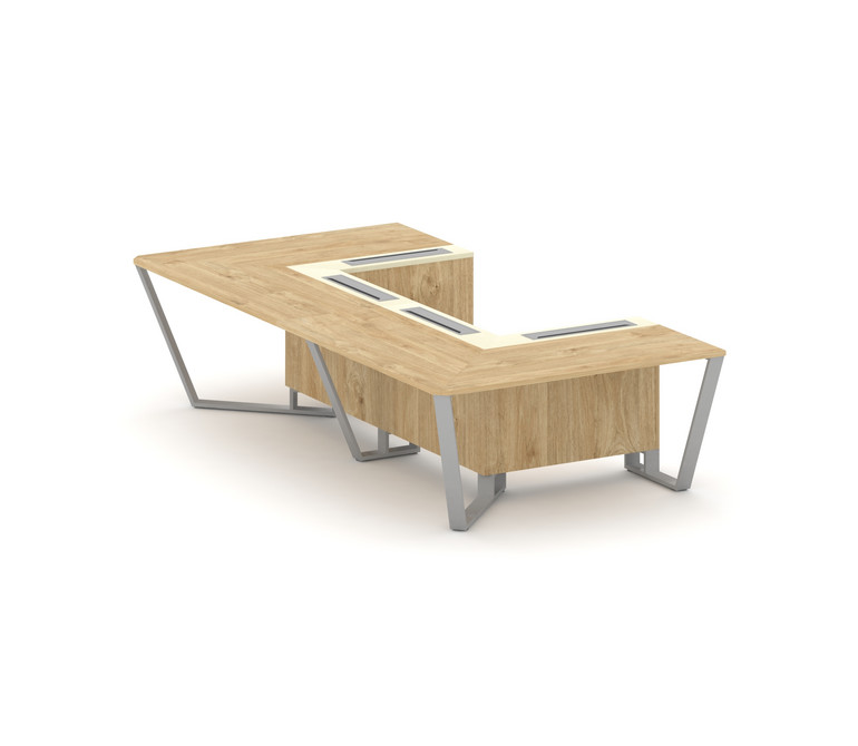 Steel Meet Стол переговорный П-образный KM-PR.B.SP-07P Тиквуд Светлый/Ваниль Глянец/Металл Серый 160