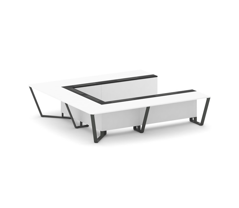 Steel Meet Стол переговорный П-образный KM-PR.B.SP-11P Белый Бриллиант/Графит Глянец/Металл Антрацит