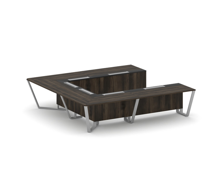 Steel Meet Стол переговорный П-образный KM-PR.B.SP-11P Дуб Мали/Графит Глянец/Металл Серый 3200*3200