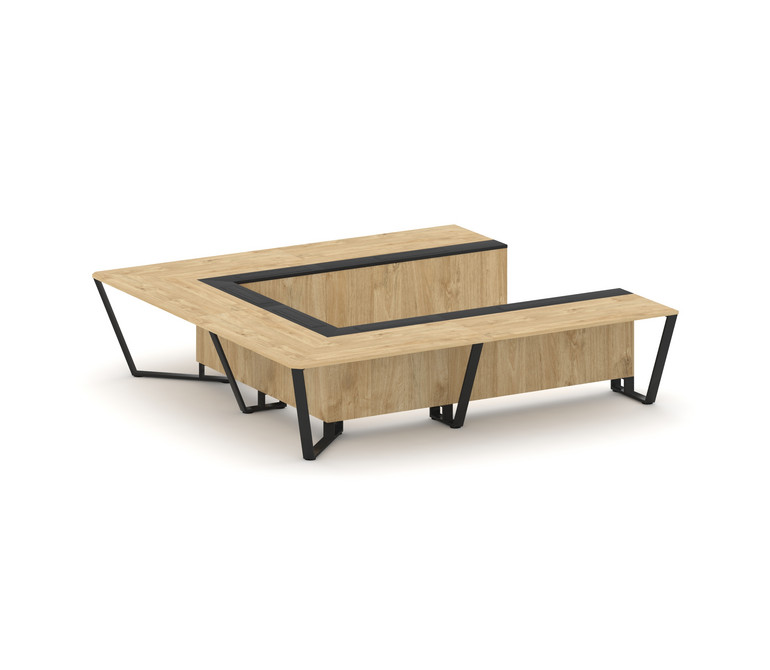 Steel Meet Стол переговорный П-образный KM-PR.B.SP-11P Тиквуд Светлый/Графит Глянец/Металл Черный 32