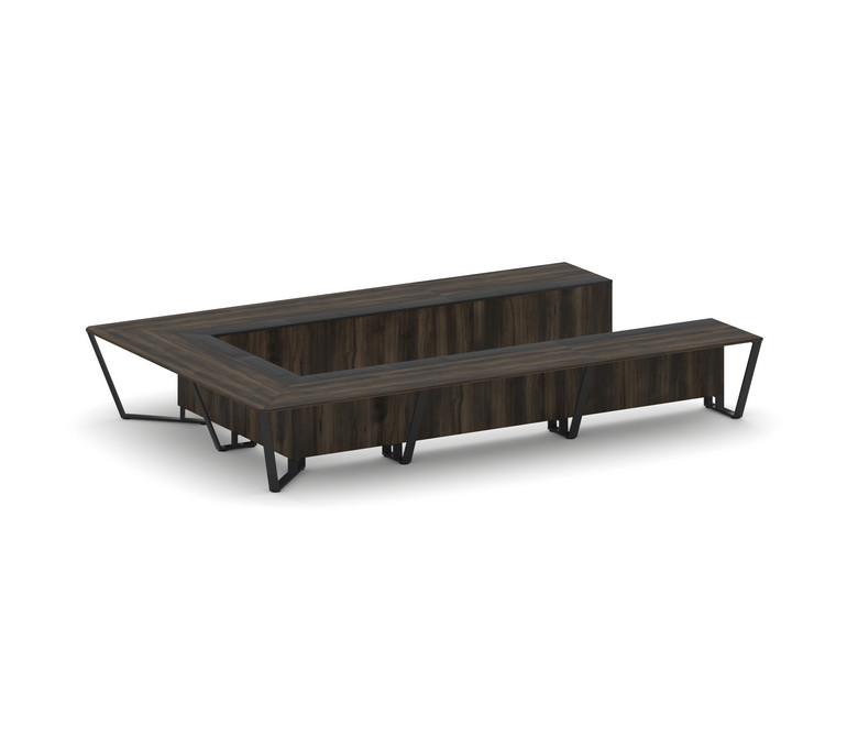 Steel Meet Стол переговорный П-образный KM-PR.B.SP-15P Дуб Мали/Графит Глянец/Металл Черный 4800*320