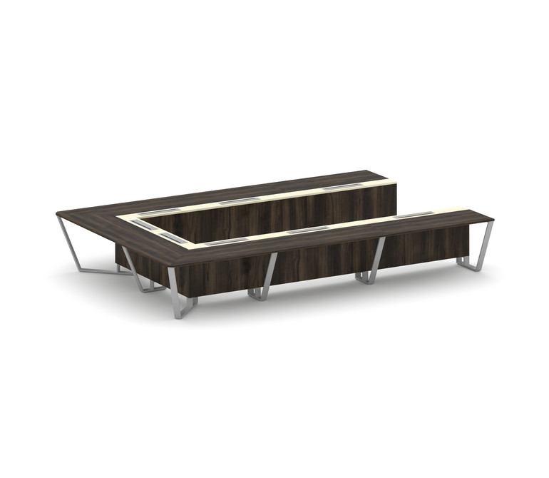 Steel Meet Стол переговорный П-образный KM-PR.B.SP-15P Дуб Мали/Ваниль Глянец/Металл Серый 4800*3200