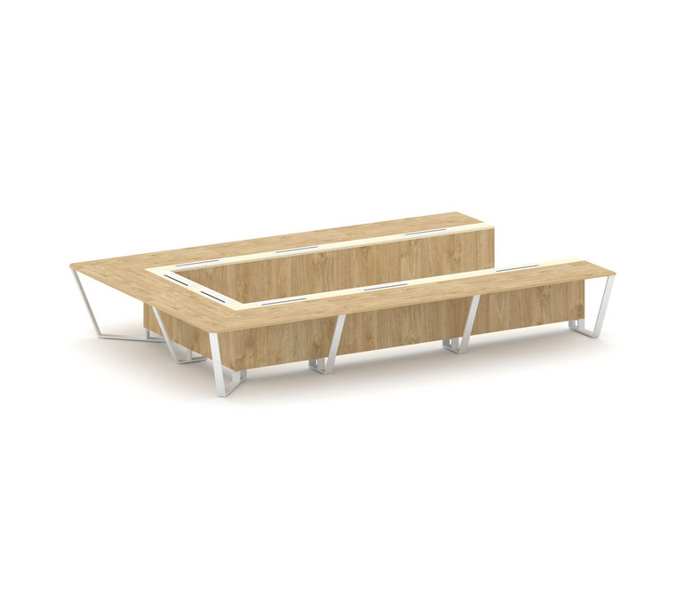Steel Meet Стол переговорный П-образный KM-PR.B.SP-15P Тиквуд Светлый/Ваниль Глянец/Металл Белый 480