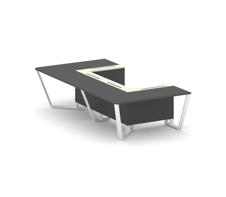 Steel Meet Стол переговорный П-образный KMK-PR.B.SP-07P Антрацит/Ваниль Глянец/Металл Белый 1600*320
