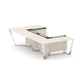 Steel Meet Стол переговорный П-образный KMK-PR.B.SP-07P Тиквуд Светлый/Ваниль Глянец/Металл Антрацит