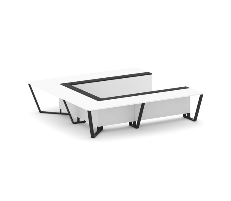 Steel Meet Стол переговорный П-образный KMK-PR.B.SP-11P Белый Бриллиант/Графит Глянец/Металл Черный