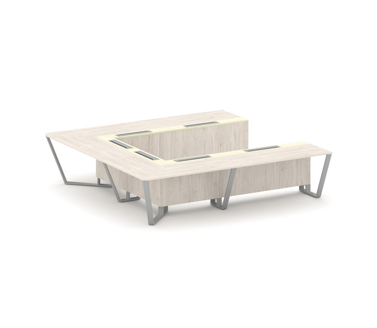 Steel Meet Стол переговорный П-образный KMK-PR.B.SP-11P Денвер Светлый/Ваниль Глянец/Металл Серый 32