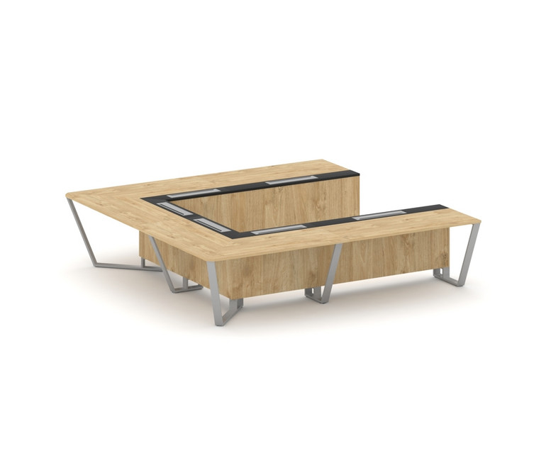Steel Meet Стол переговорный П-образный KMK-PR.B.SP-11P Тиквуд Светлый/Графит Глянец/Металл Серый 32